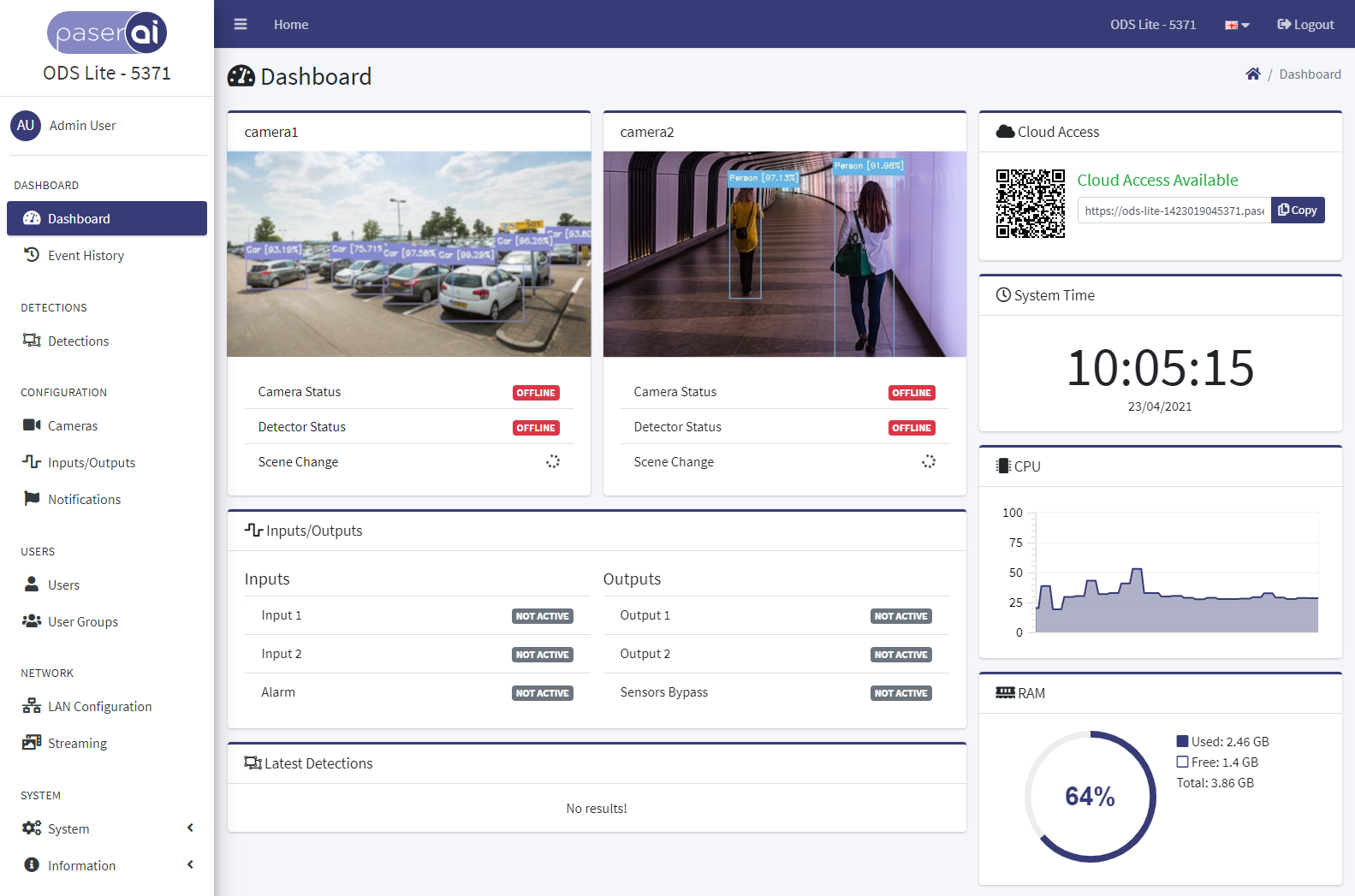 Thanks to the Nvidia GPU, ODS Lite is able to create a fast high-performance neural network, excellent for processing the video streams received from the cameras and for recognizing the objects in the recorded scene.